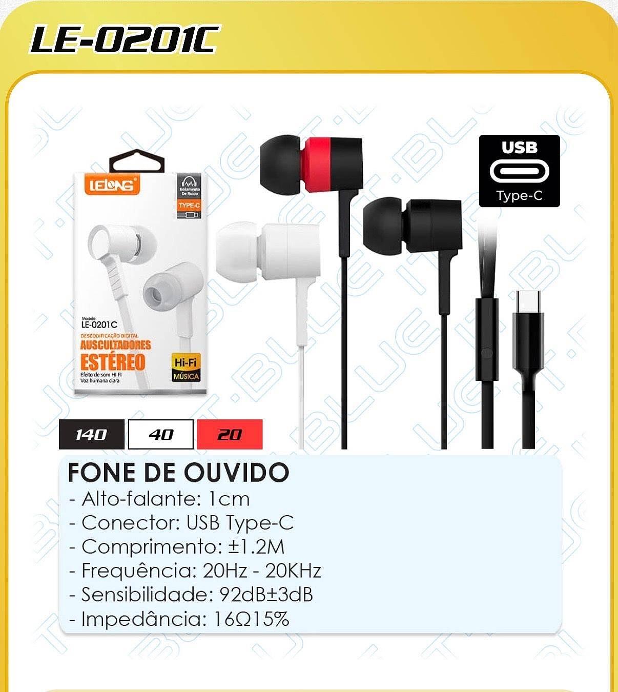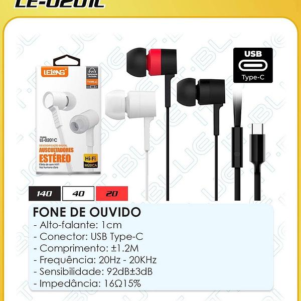 FONE DE OUVIDO - Alto-falante: 1cm - Conector: USB Type-C