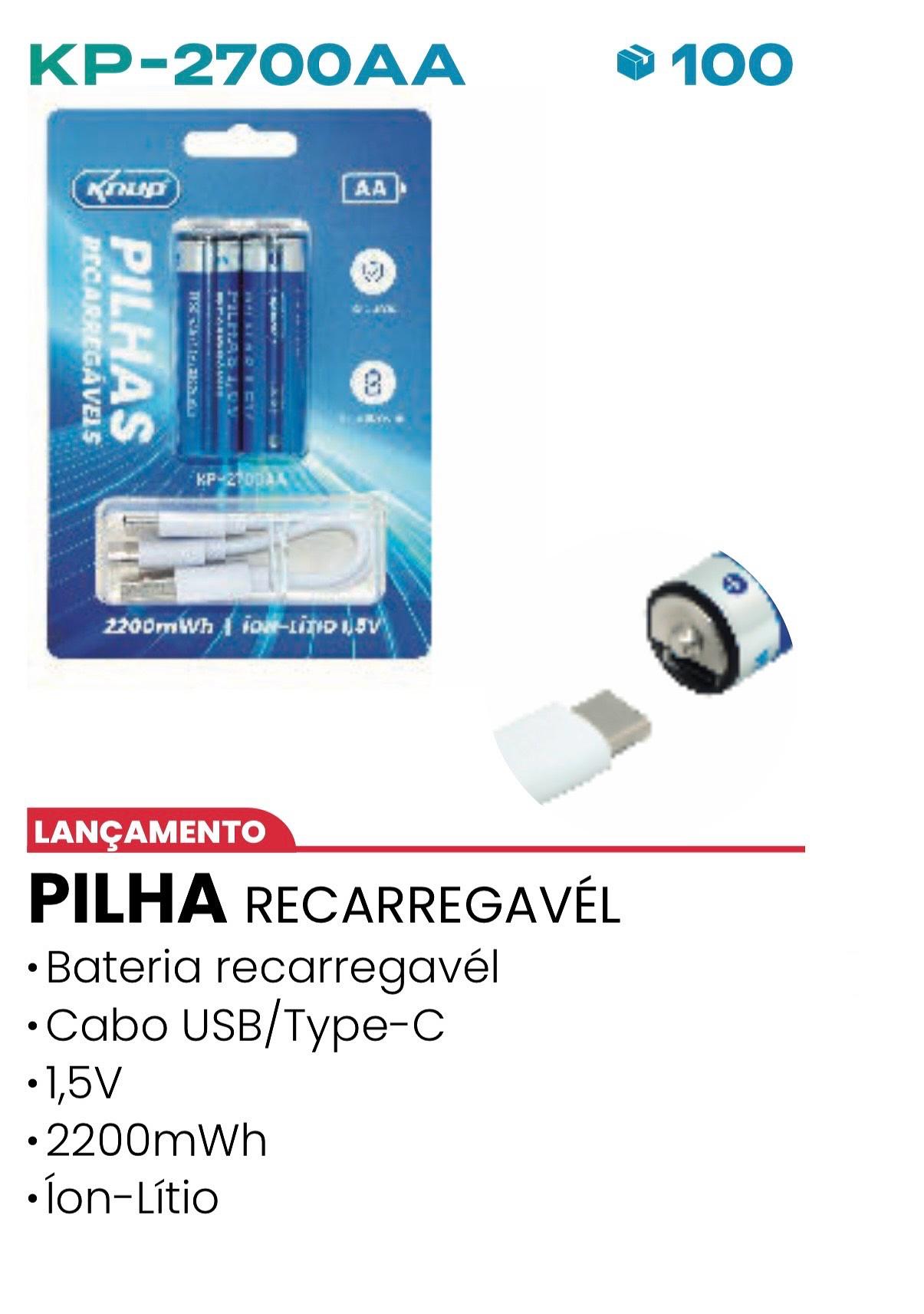 PILHA RECARREGAVÉL • Bateria recarregavél • Cabo USB/Type-C