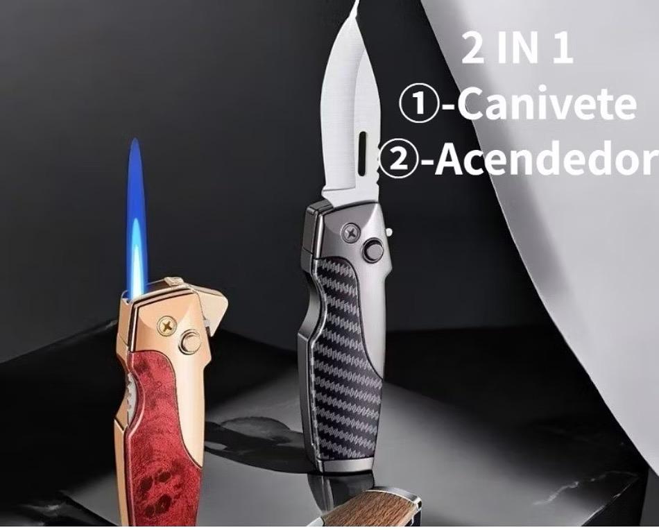 Acendedor Multifuncional à Prova de Vento com Canivete Camping Dobrável(sem gas)