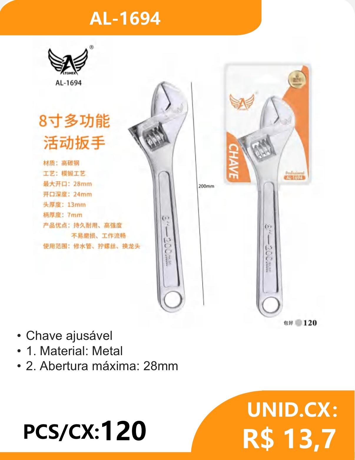 Chave ajusável • 1. Material: Metal • 2. Abertura máxima: 28mm