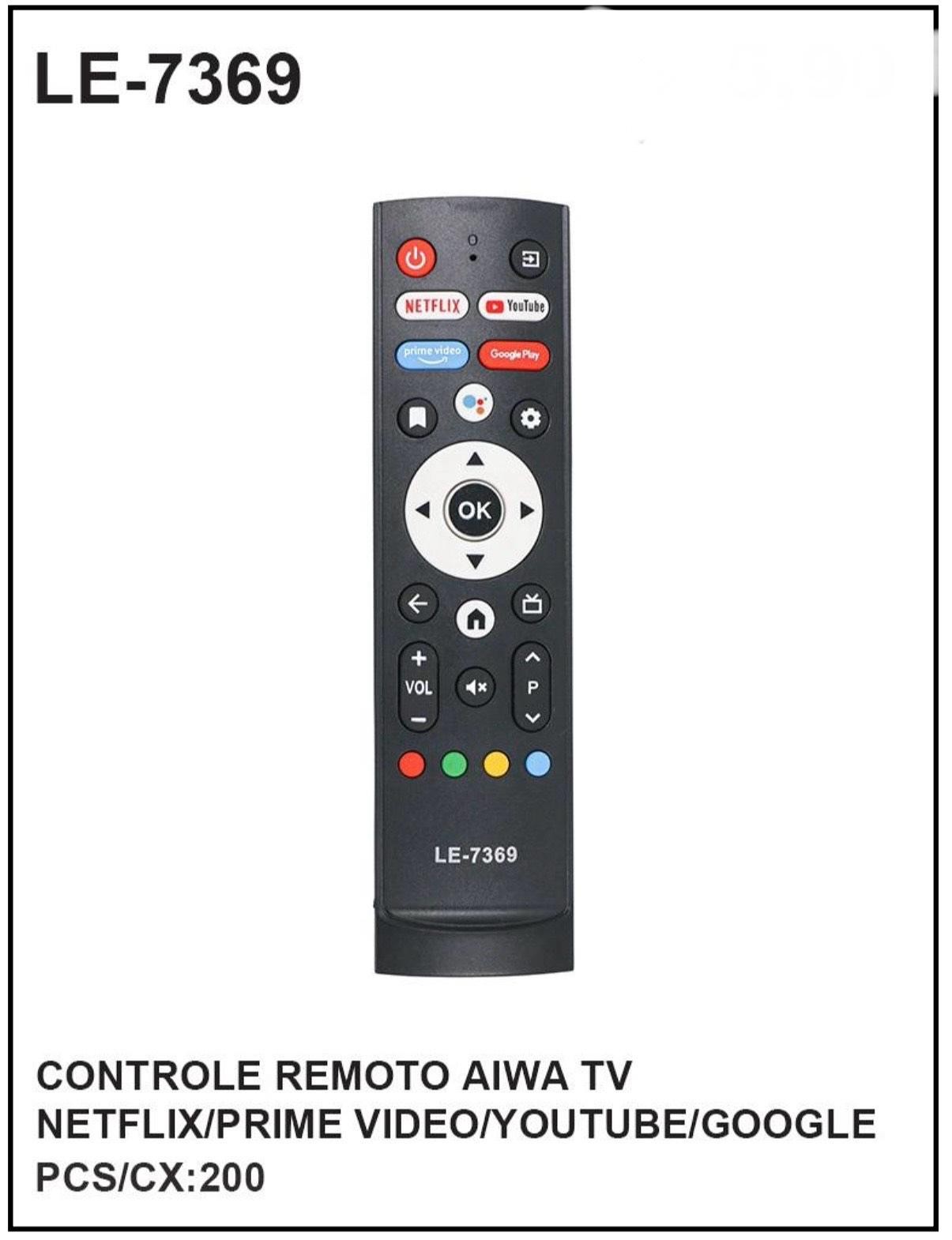 CONTROLE REMOTO AIWA TV NETFLIX/PRIME VIDEO/YOUTUBE/GOOGLE