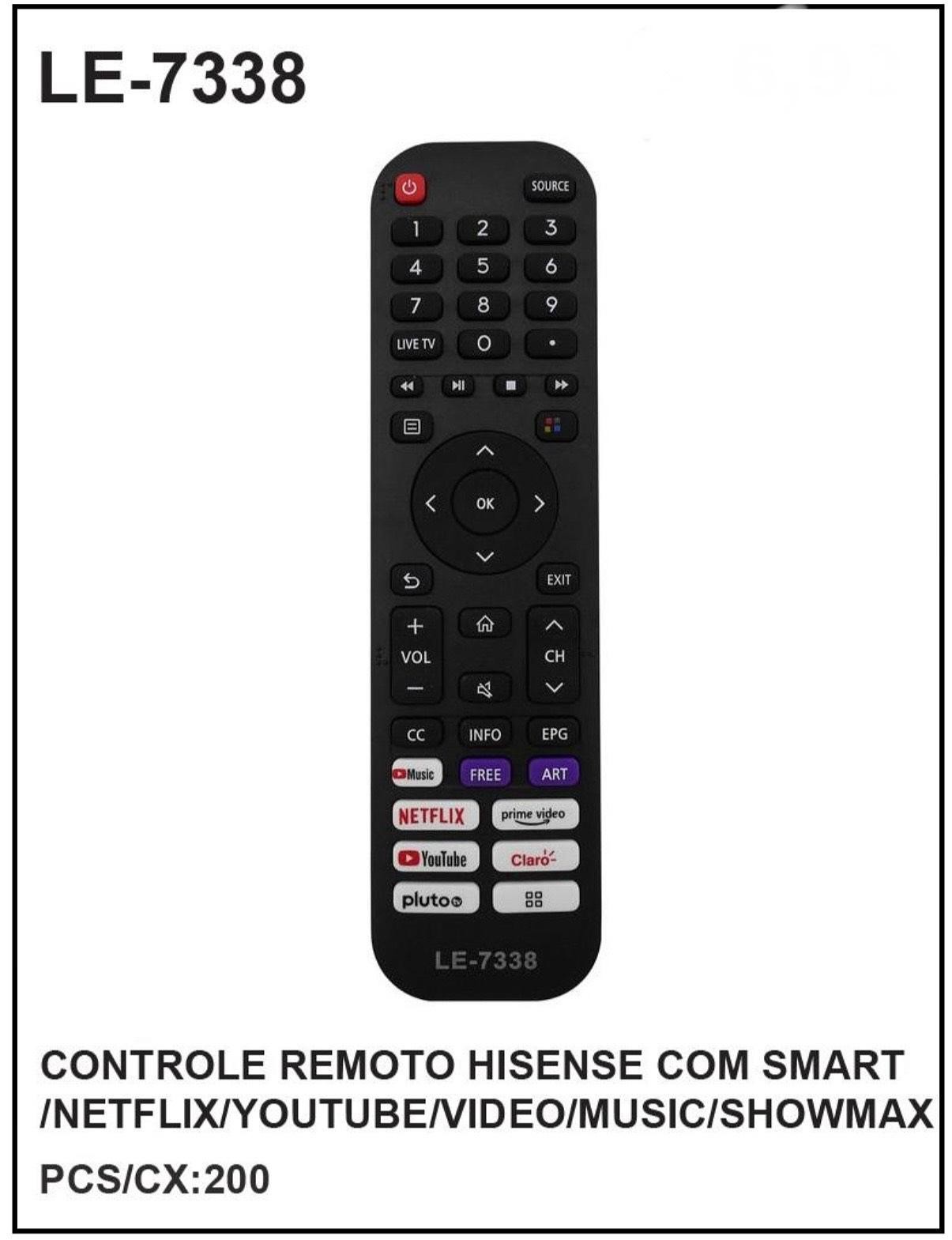 CONTROLE REMOTO HISENSE COM SMART /NETFLIX/YOUTUBE/VIDEO/MUSIC/SHOWMAX