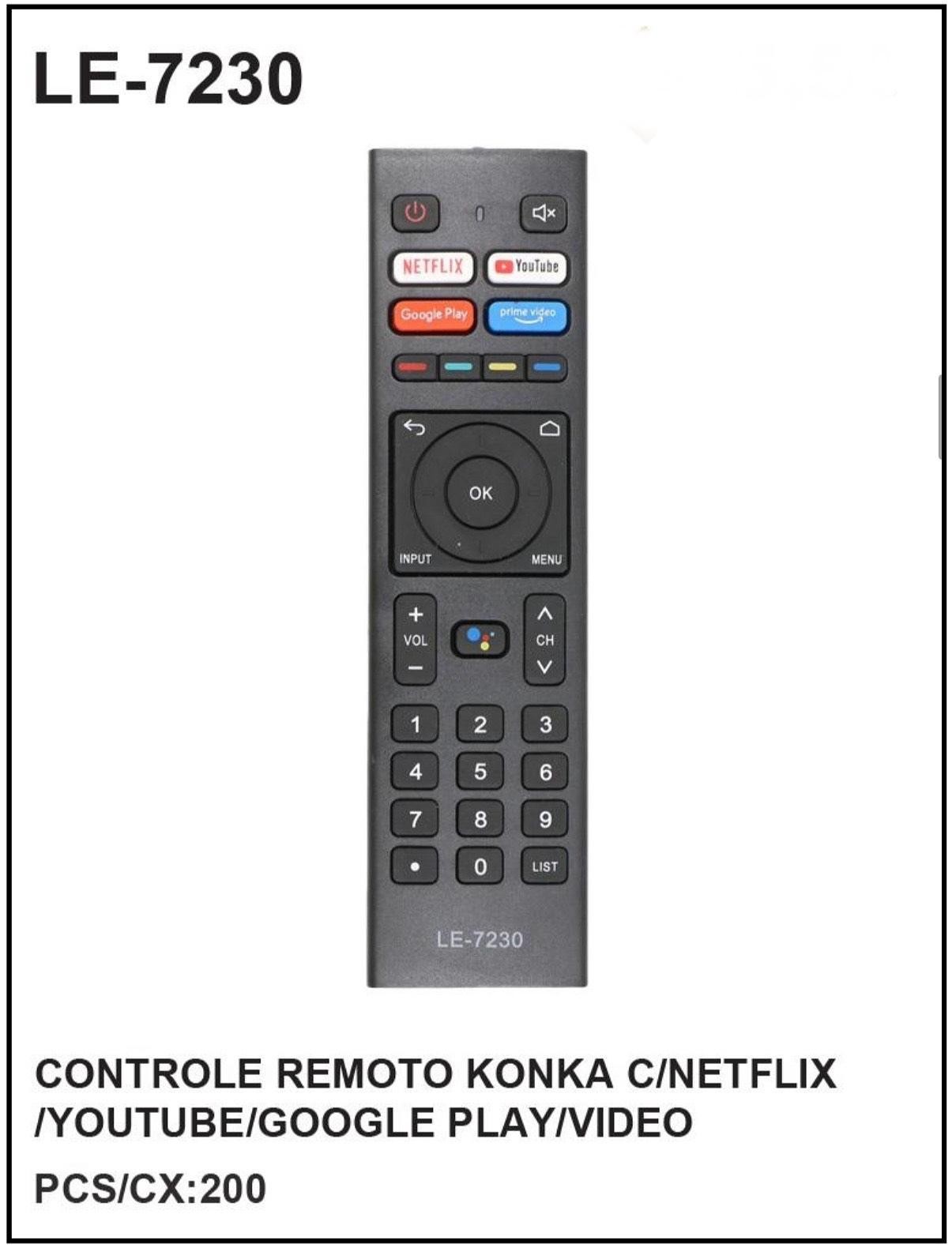 CONTROLE REMOTO KONKA C/NETFLIX /YOUTUBE/GOOGLE PLAY/VIDEO