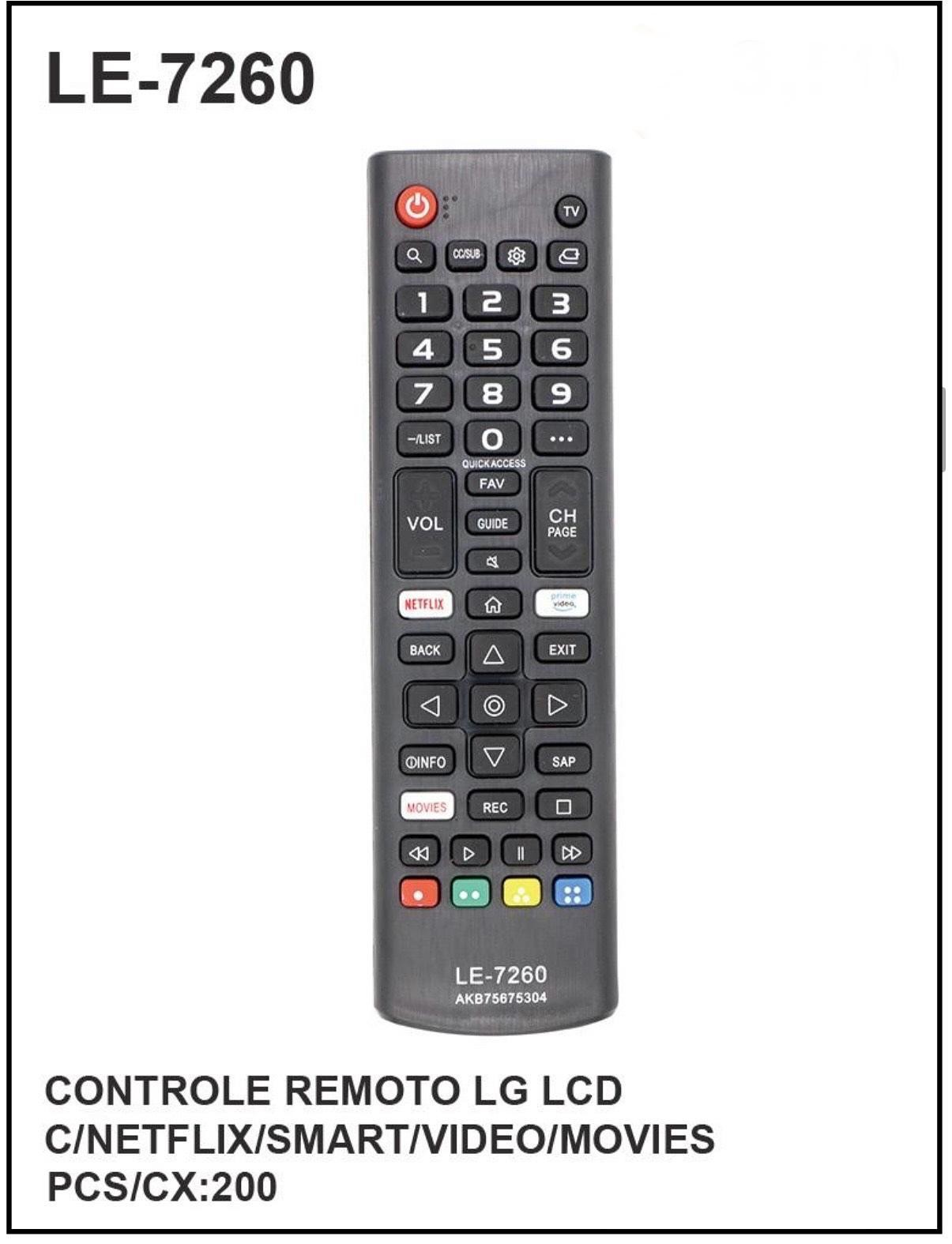 CONTROLE REMOTO LG LCD C/NETFLIX/SMART/VIDEO/MOVIES