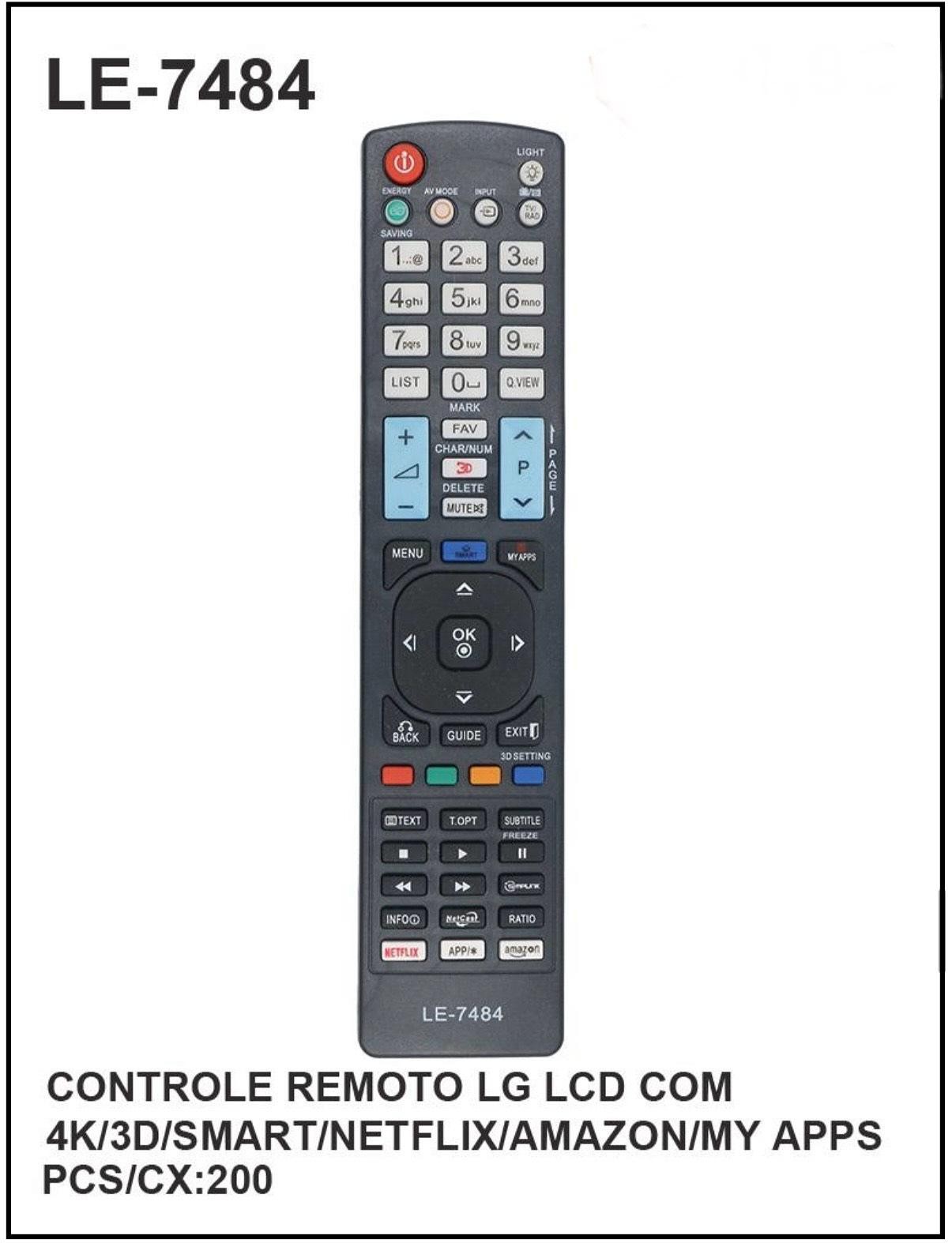 CONTROLE REMOTO LG LCD COM 4K/3D/SMART/NETFLIX/AMAZON/MY APPS