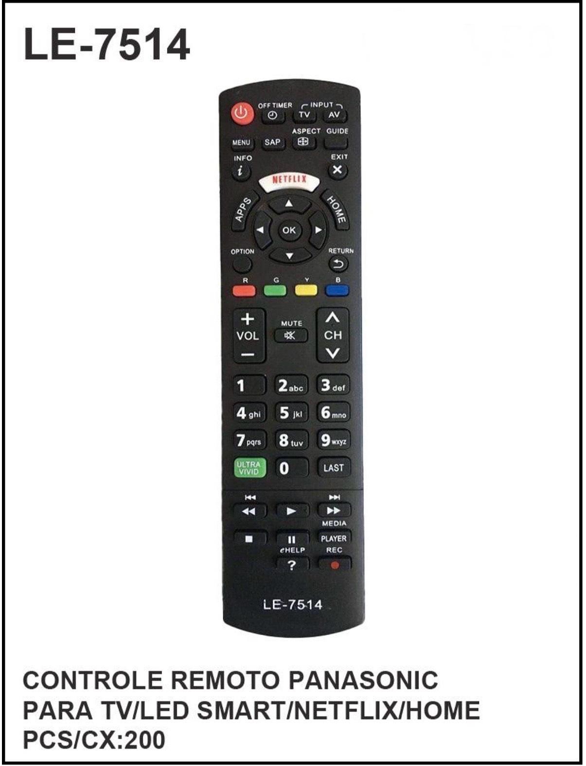 Controle Remoto Panasonic P/ Tv LED Smart/Netflix/Home