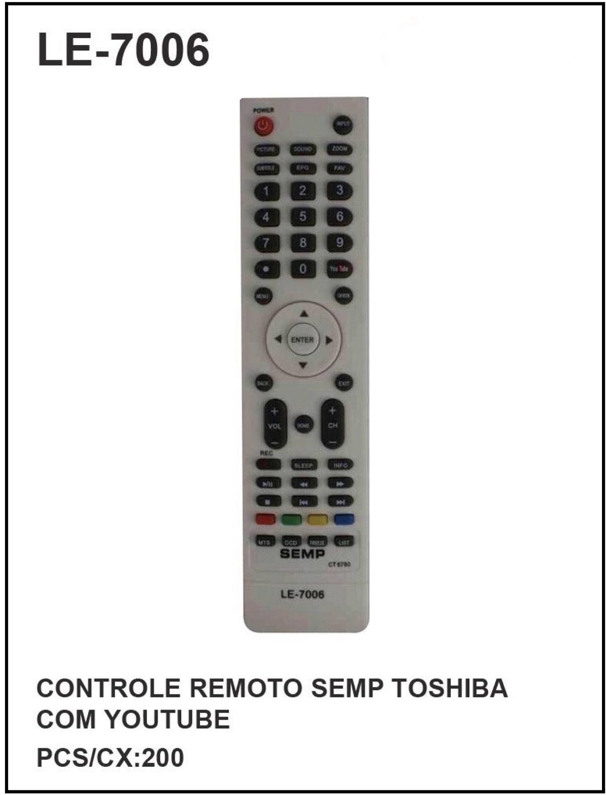 CONTROLE REMOTO SEMP TOSHIBA COM YOUTUBE