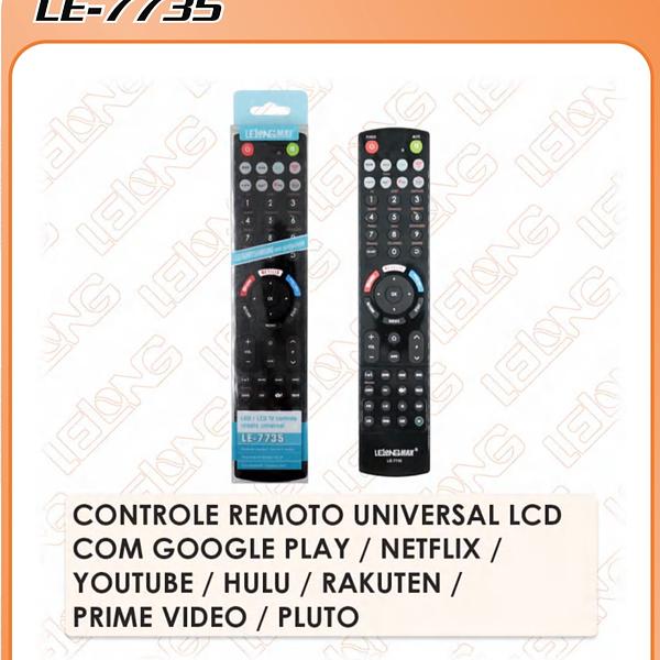 CONTROLE REMOTO UNIVERSAL LCD COM GOOGLE PLAY / NETFLIX / YOUTUBE / HULU / RAKUTEN / PRIME VIDEO / PLUTO