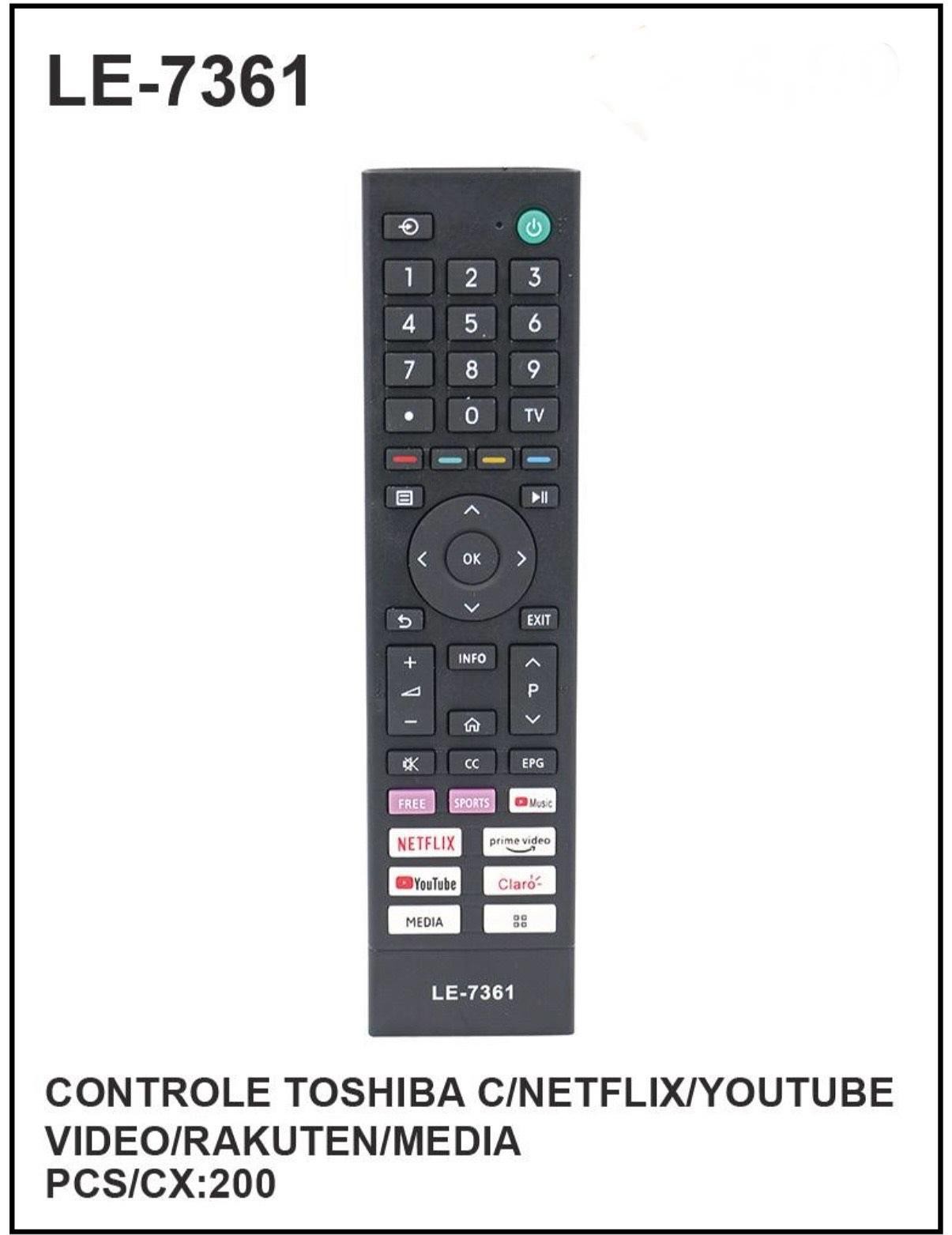 CONTROLE TOSHIBA C/NETFLIX/YOUTUBE VIDEO/RAKUTEN/MEDIA