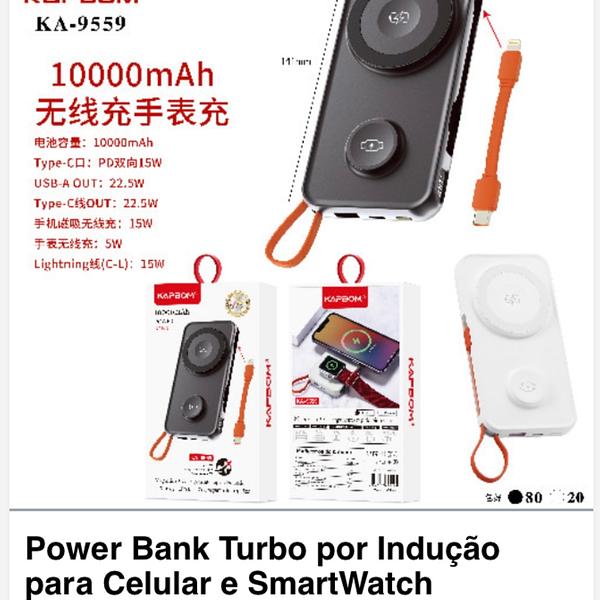Power Bank Turbo por Indução para Celular e SmartWatch 10000mAh