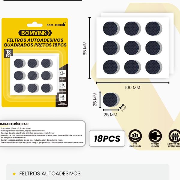 FELTROS AUTOADESIVOS REDONDOS PRETOS 18PCS