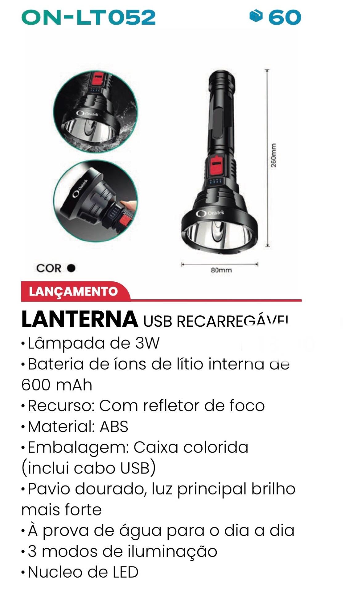 LANTERNA USB RECARREGÁVEI • Lâmpada de 3W