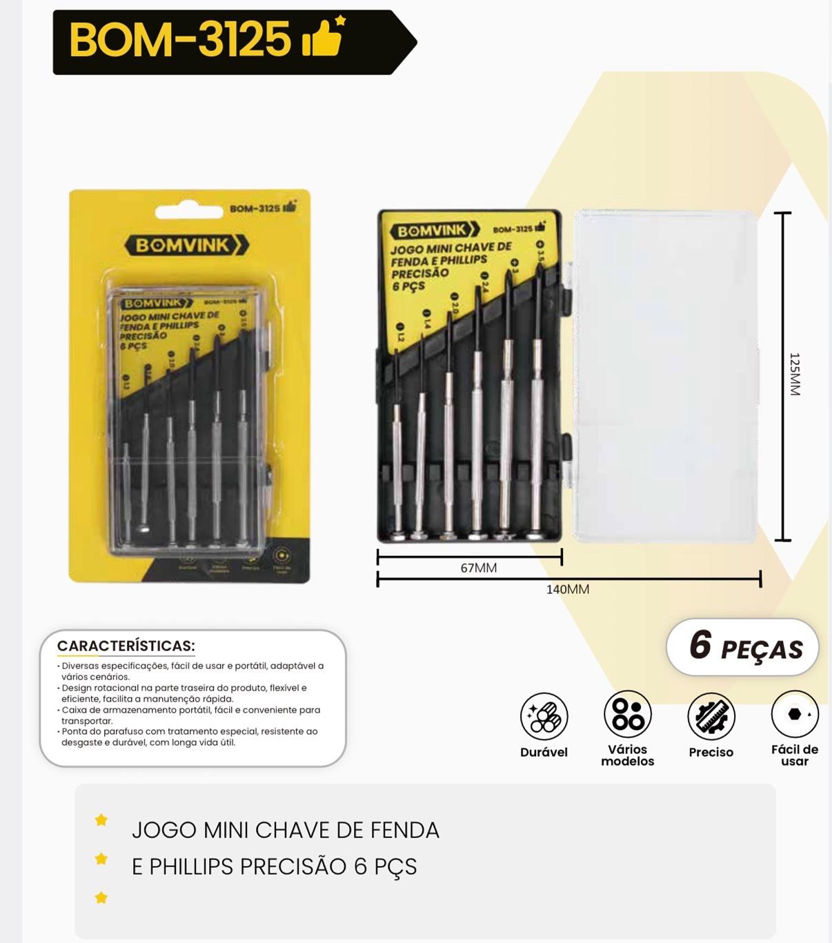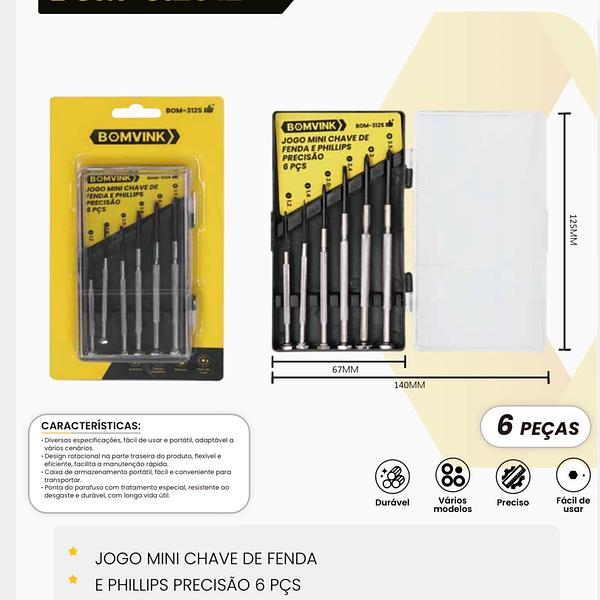 JOGO MINI CHAVE DE FENDA E PHILLIPS PRECISÃO 6 PÇS