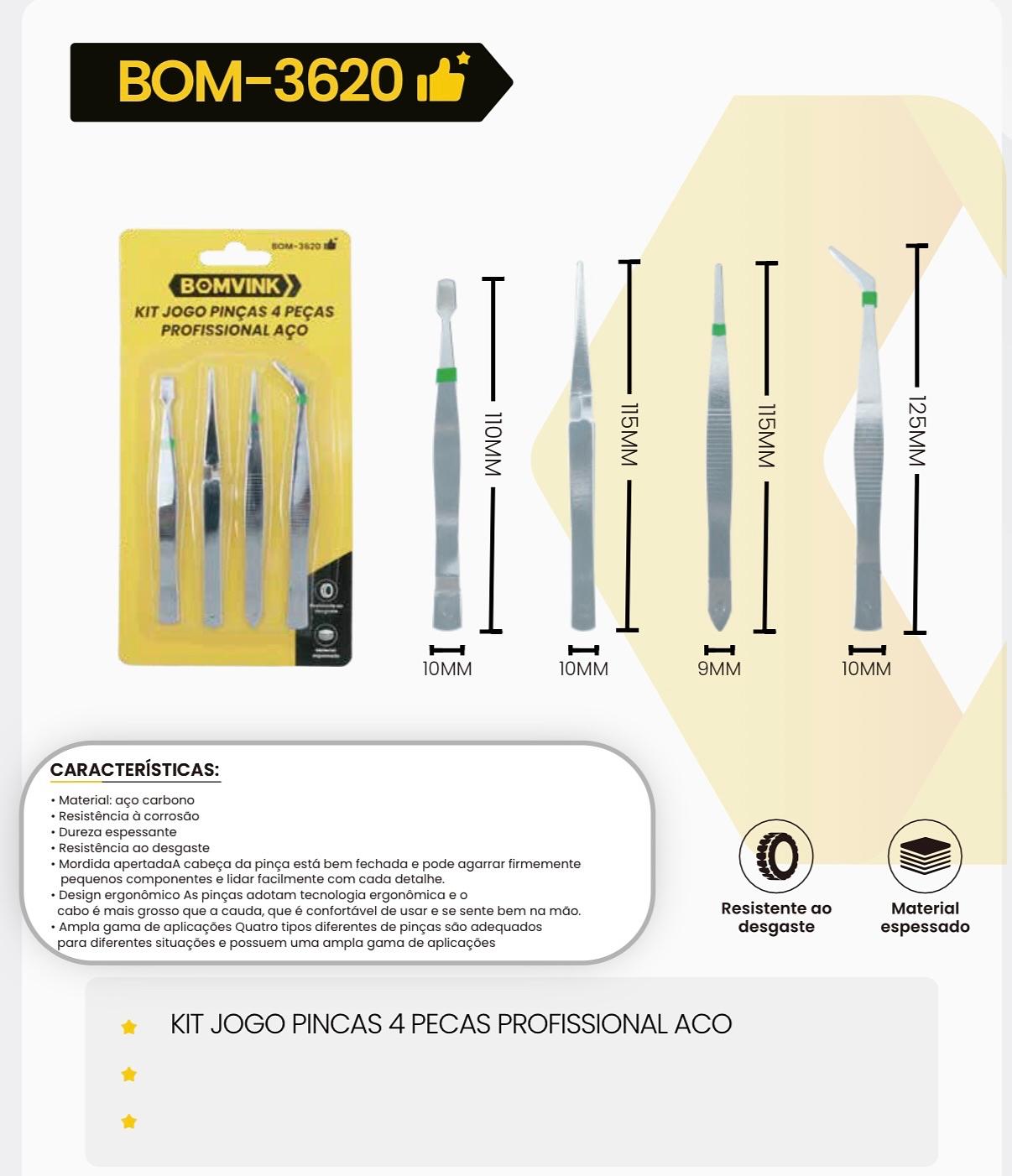 KIT JOGO PINCAS 4 PECAS PROFISSIONAL ACO