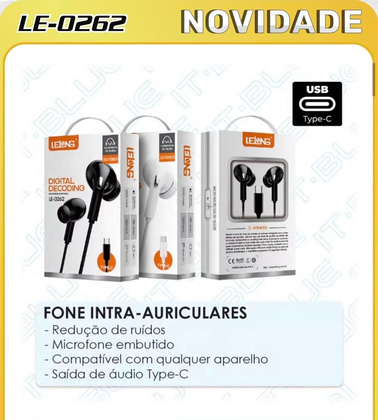 FONE INTRA-AURICULARES Saída de áudio Type-C