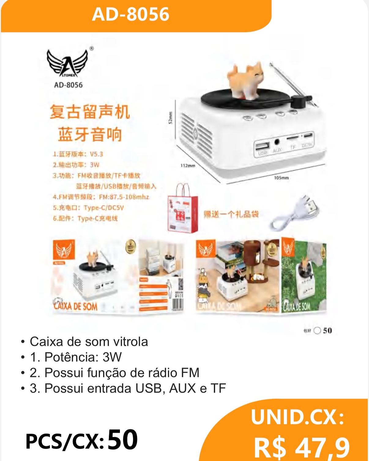 Caixa de som vitrola • 1. Potência: 3W