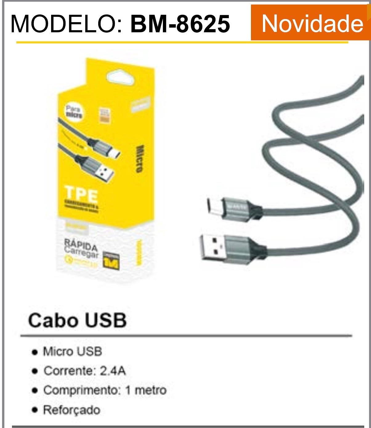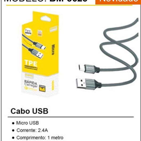 Micro USB • Corrente: 2.4A • Comprimento: 1 metro