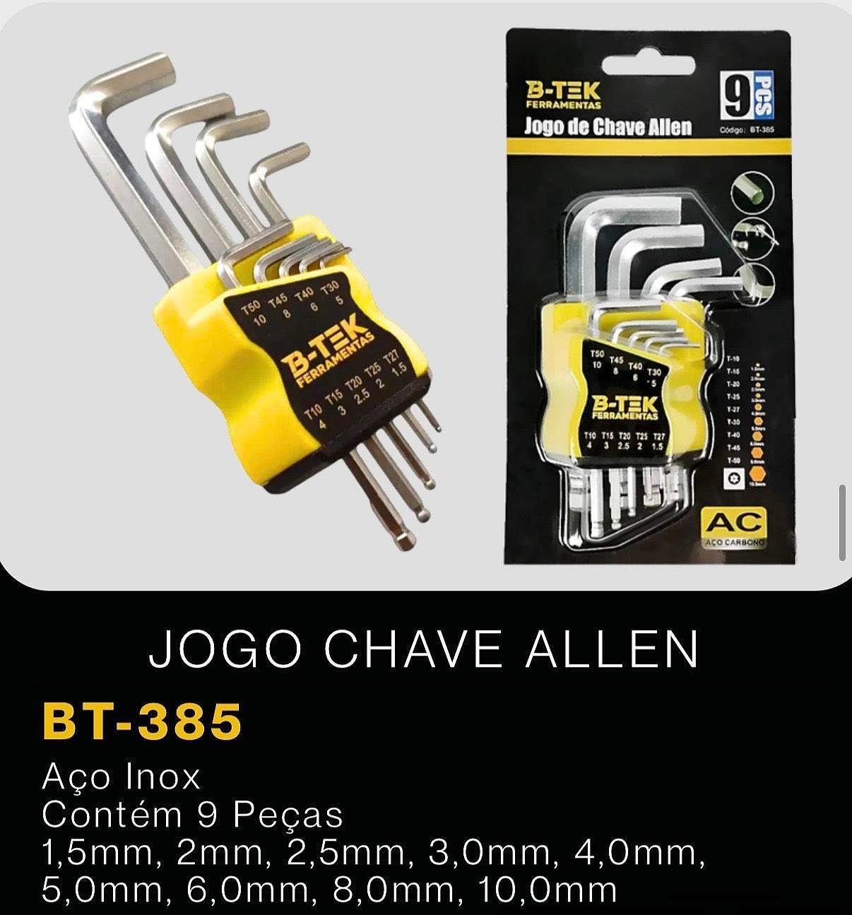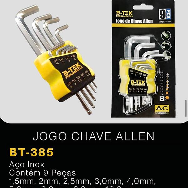 JOGO CHAVE ALLEN Aço Inox Contém 9 Peças