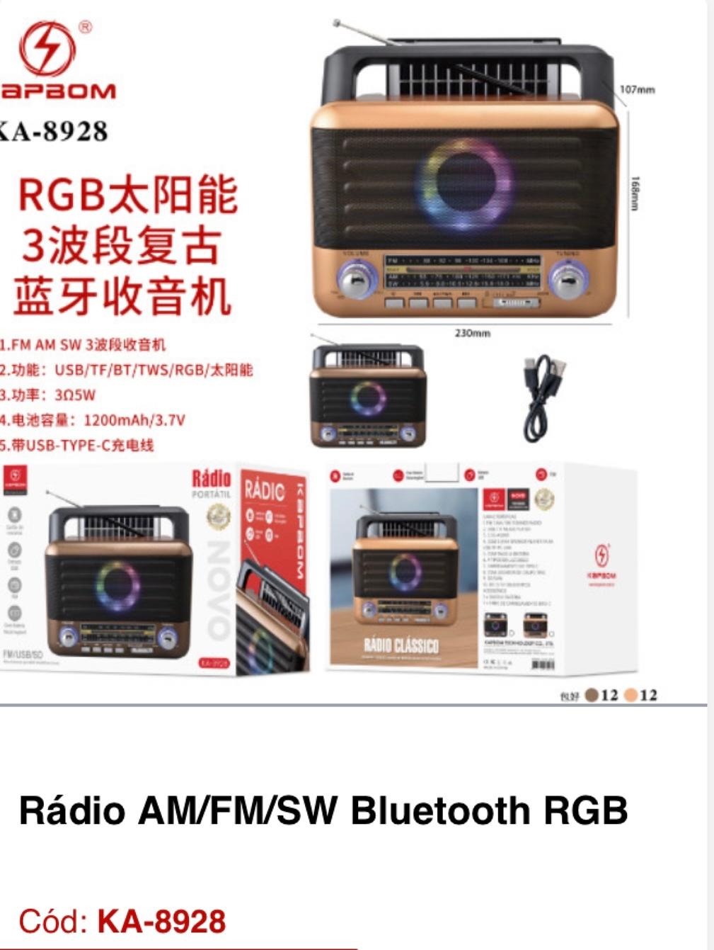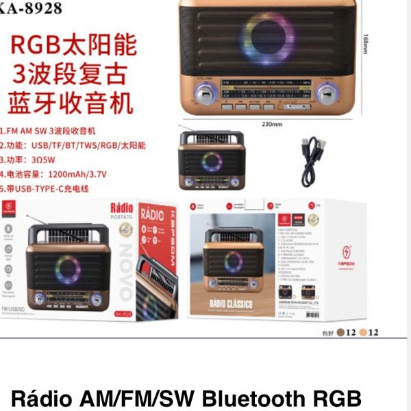 Rádio AM/FM/SW Bluetooth RGB