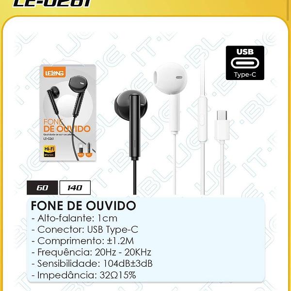 FONE DE OUVIDO - Alto-falante: 1cm - Conector: USB Type-C