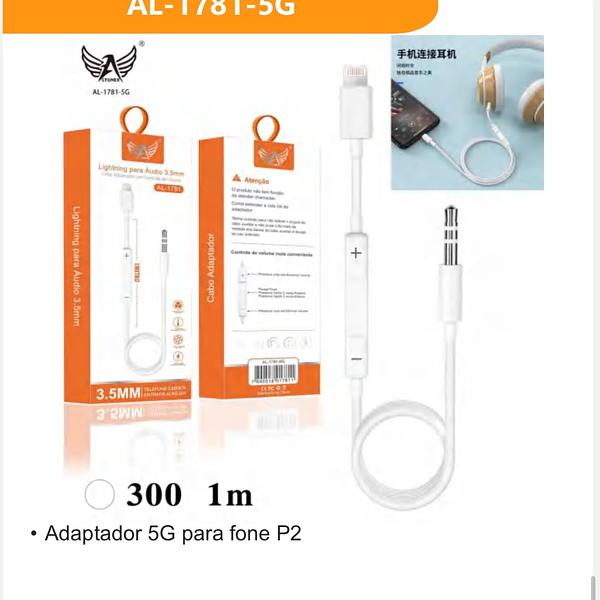 Entrada Lightning Saída P2 3.5mm Transmissão de áudio